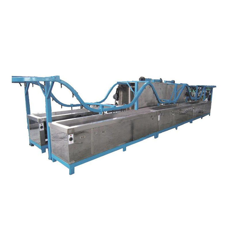 采用自動懸掛鏈輸送的多工位超聲波清洗、超聲漂洗、噴淋、純化、烘干清洗線,主要用于清洗汽車剎車片鋼片、硅鋼片、汽車、摩托車零部件等,全清洗線采用優質不銹鋼制作,依據各工序設有自動補液裝置,對液面、溫度等工藝參數進行自動控制,對生產特殊情況設有緊急停車自動報警裝置。同時可以依據工藝不同隊設備的清洗工序等進行自行調整。